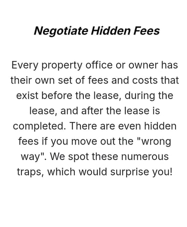 "Our Tenant Agents represent and work for only you, negotiate costs and terms for you, and do not help property owners make more money."